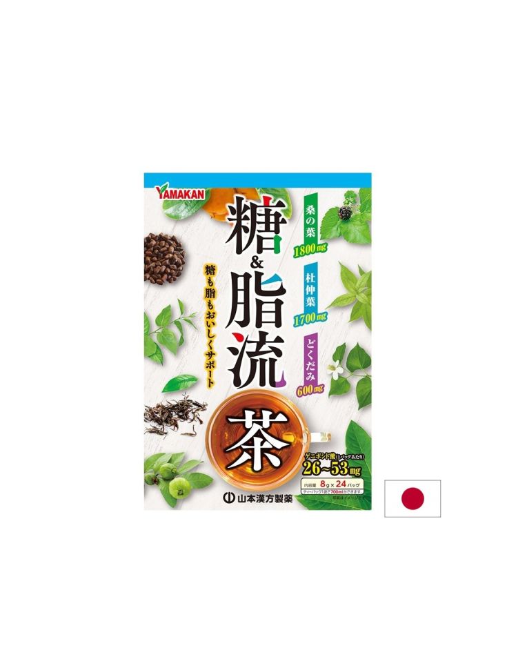 Смес от 12 растения, подбрани да подпомагат нормалния глюкозен метаболизъм и хранителните навици. Съставът включва листа от черница (桑の葉), хабу чай/решетник (ハブ茶, Cassia tora), кафяв ориз (玄米), ечемик (大麦), улун (烏龍茶), бял меч-боб/канавалия (白刀豆, Canavalia gladiata), царевица (とうもろこし), листа от банаба (バナバ葉, Lagerstroemia speciosa), листа от гуава (シジュウムグァバ葉, Psidium guajava), гимнема силвестре (ギムネマ・シルベスタ), листа от хурма (かき葉) и сладник/женско биле (カンゾウ). Действието се дължи главно на билки, които подпомагат инсулиновата чувствителност и забавят усвояването на въглехидратите като банаба, гимнема и гуава. Антиоксидантите и полифенолите от черница, хурма и улун подпомагат метаболитния баланс и клетъчната защита. Зърнените компоненти като кафяв ориз, ечемик и царевица омекотяват вкуса и подпомагат храносмилателния комфорт. Препоръчителният прием е едно филтър пакетче (10 g), добавено към 700–900 ml вряща вода и варено на слаб огън около 5 минути, или студено запарване в 800 ml вода за около 2 часа. Чаят се пие на порции през деня. Продуктът не е лекарство.