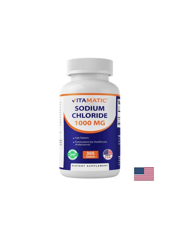 Хранителната добавка, осигуряваща 1000 mg натриев хлорид във всяка таблетка и подпомага поддържането на нормален електролитен и воден баланс в организма. Формулата подкрепя правилната функция на мускулите и нервната система. Допринася за по-добра хидратация при интензивно потене, физическо натоварване или загуба на течности. Поддържа енергията и общата издръжливост. Препоръчителният прием е 1 таблетка дневно с вода или според указанията на специалист.
