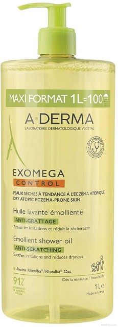 А-Дерма Екзомега емолиентно душ-олио х 1 литър| Exomega A-Derma