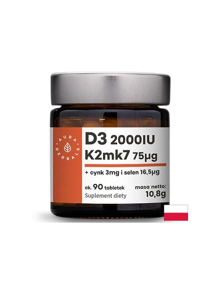 Витамин Д3 1000IU + К2 МК-7 37.5 мкг х 90 таблетки Aura Herbals | Vitamins D3 + K2