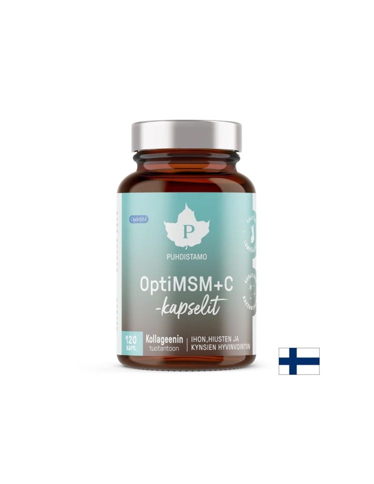 Висококачествена хранителна добавка, съдържаща активните съставки метилсулфонилметан (MSM) OptiMSM® – органична сяра с висока чистота, витамин C под формата на патентования комплекс PureWay-C® (с включени цитрусови биофлавоноиди и мастни киселини за по-добра усвояемост) и молибден, който подпомага метаболизма на серните съединения в организма; формулата подпомага синтеза на колаген и кератин, като допринася за здрава кожа, коса и нокти, поддържа нормалната функция на ставите, сухожилията и съединителната тъкан, подпомага възстановяването след физическо натоварване и има антиоксидантен ефект срещу оксидативния стрес, като същевременно витамин C намалява умората и подкрепя имунната система, а молибденът подобрява усвояването и ефективността на MSM; продуктът е с висока бионаличност и чист състав без излишни добавки, като препоръчителният прием е 2–3 капсули дневно с вода, за оптимална подкрепа на кожата, ставите и общото състояние на организма.