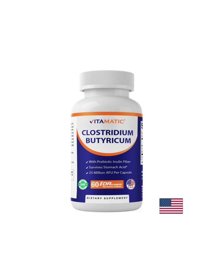 Хранителна добавка с комбинирано действие върху чревния баланс, съдържаща пробиотичния щам Clostridium butyricum и пребиотик като хранителна среда за полезните бактерии. Clostridium butyricum подпомага възстановяването на чревната микрофлора и производството на маслена киселина, която подхранва клетките на дебелото черво. Намалява подуването, газовете и чревния дискомфорт. Подобрява храносмилането и усвояването на хранителните вещества. Пребиотикът подпомага растежа и активността на полезните бактерии в червата. Комбинацията допринася за по-добър чревен баланс и имунна защита. Подходяща е при храносмилателни проблеми, прием на антибиотици и нарушена микрофлора. Препоръчителният прием е 1 до 2 капсули дневно. Приема се с вода, за предпочитане по време на хранене.